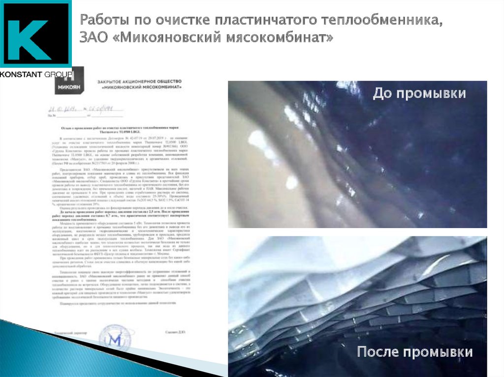 Работы по очистке пластинчатого теплообменника,ЗАО «Микояновский мясокомбинат»