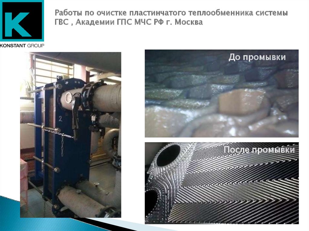 Работы по очистке пластинчатого теплообменника системыГВС , Академии ГПС МЧС РФ г. Москва