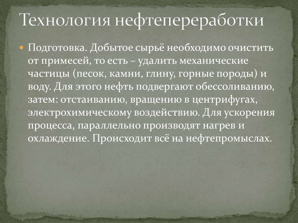 Подготовка. Добытое сырьё необходимо очиститьот примесей, то есть – удалить механические