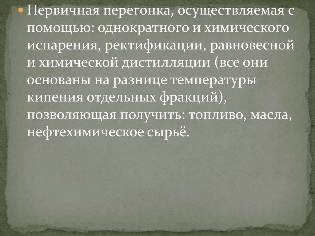 Первичная перегонка, осуществляемая спомощью: однократного и химического