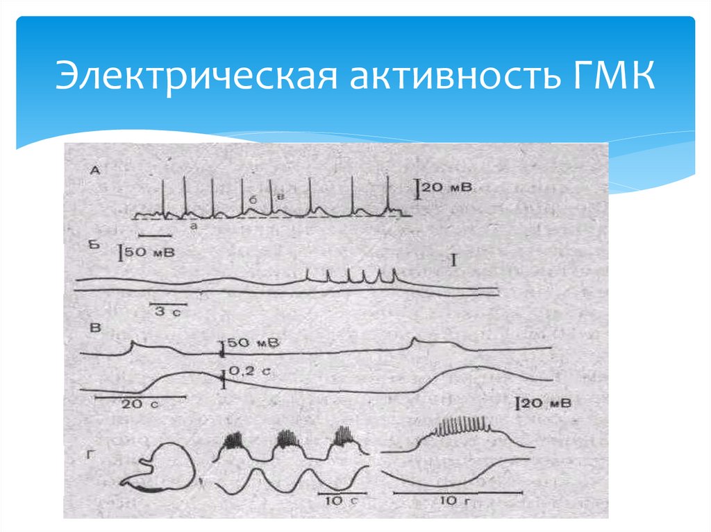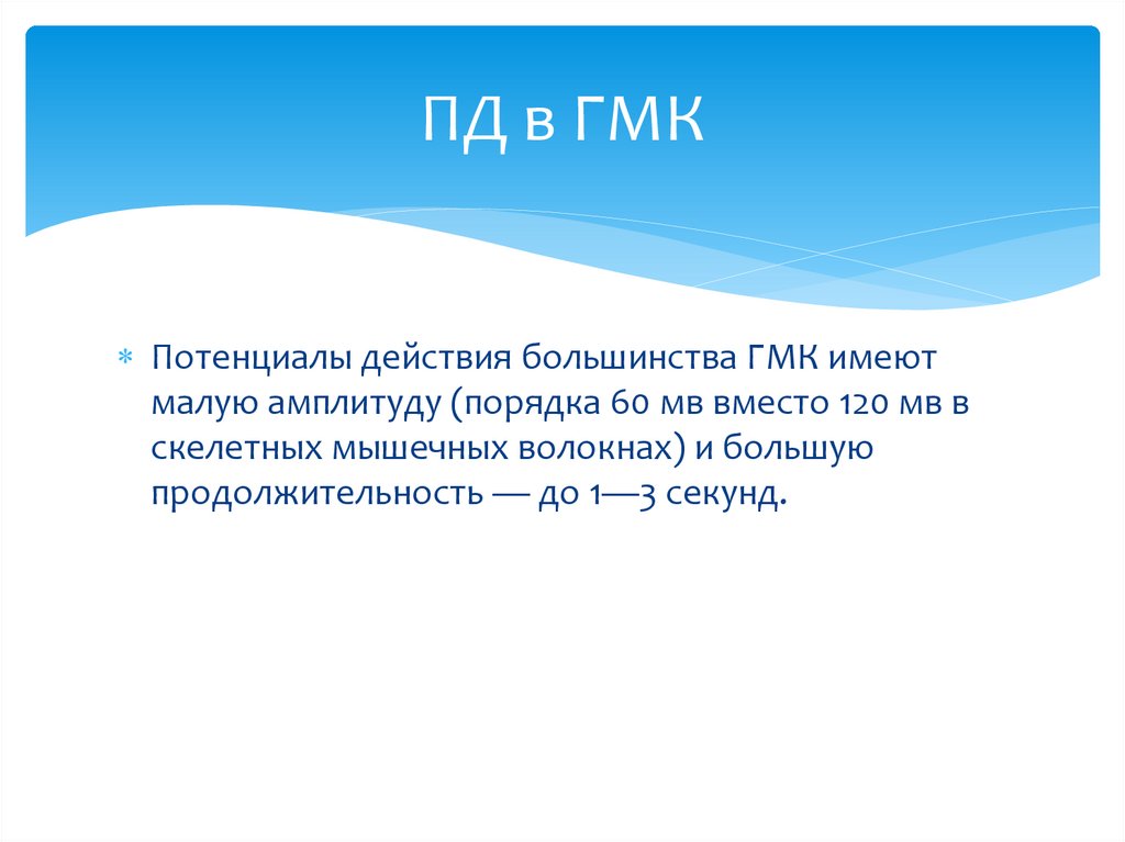 ПД в ГМКПотенциалы действия большинства ГМК имеют