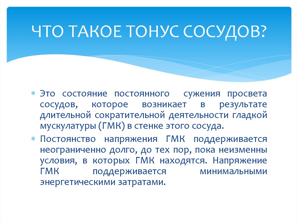 ЧТО ТАКОЕ ТОНУС СОСУДОВ?Это состояние постоянного сужения просвета