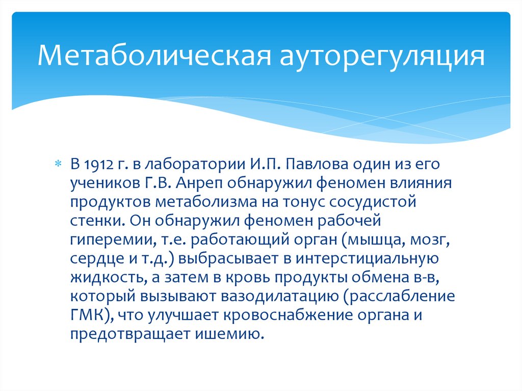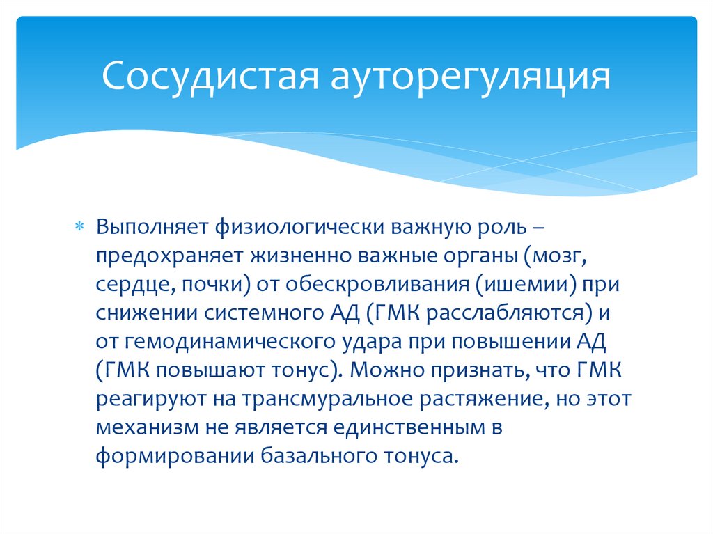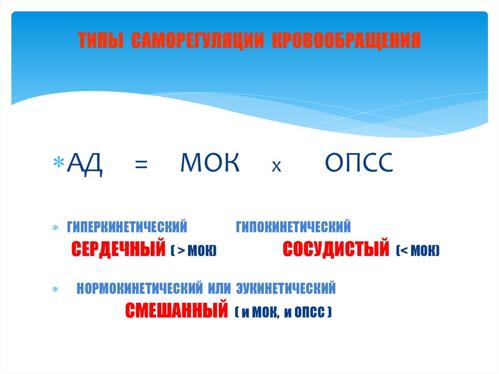 ТИПЫ САМОРЕГУЛЯЦИИ КРОВООБРАЩЕНИЯАД