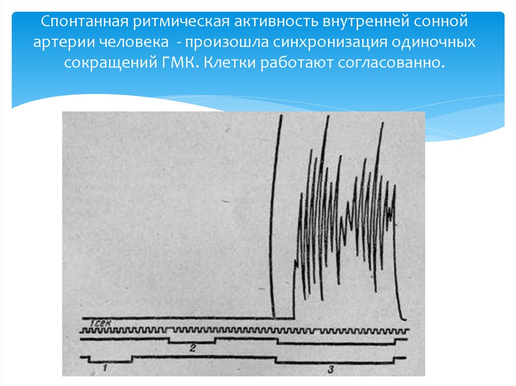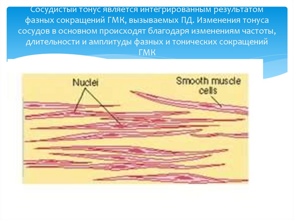 Сосудистый тонус является интегрированным результатомфазных сокращений ГМК, вызываемых ПД. Изменения тонуса