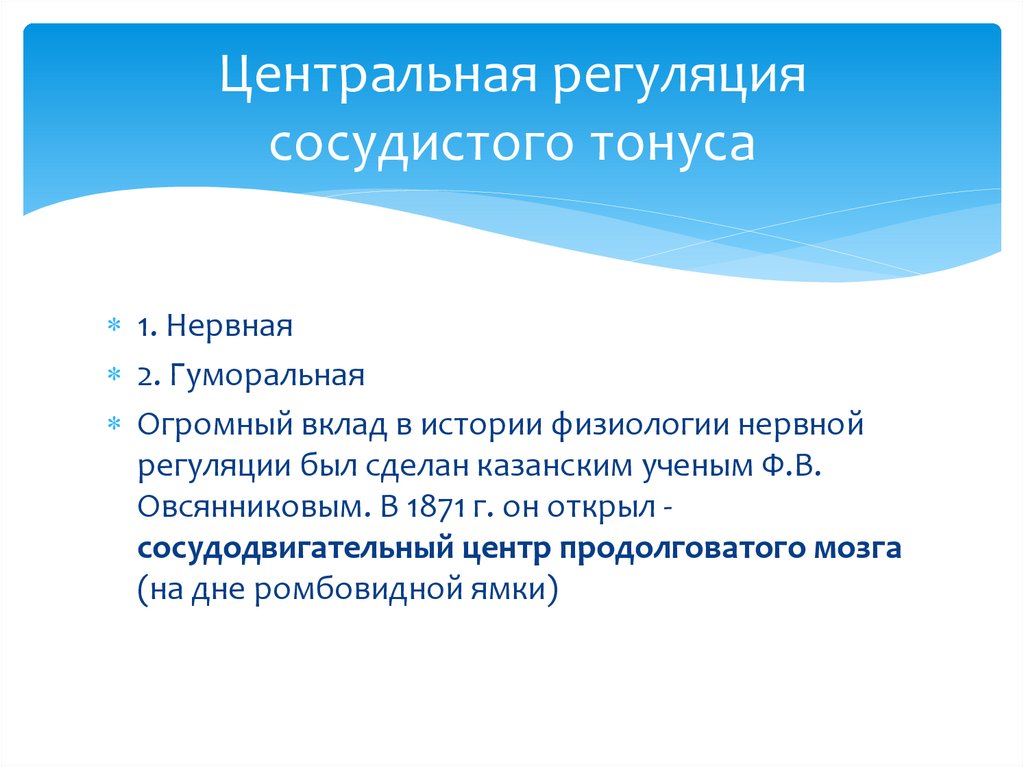 Овсянниковым. В 1871 г. он открыл сосудодвигательный центр продолговатого мозга