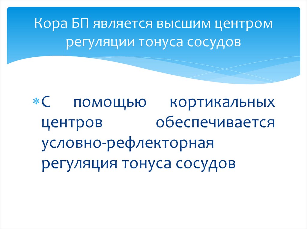 Кора БП является высшим центромрегуляции тонуса сосудов