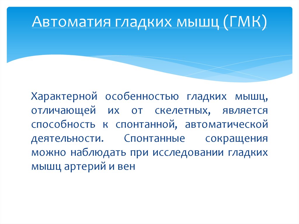 Автоматия гладких мышц (ГМК)Характерной особенностью гладких мышц,