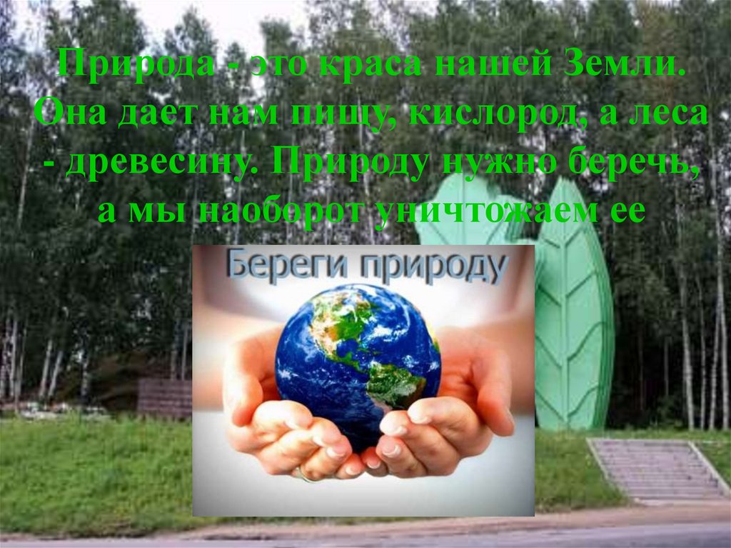 Природа - это краса нашей Земли.Она дает нам пищу, кислород, а леса