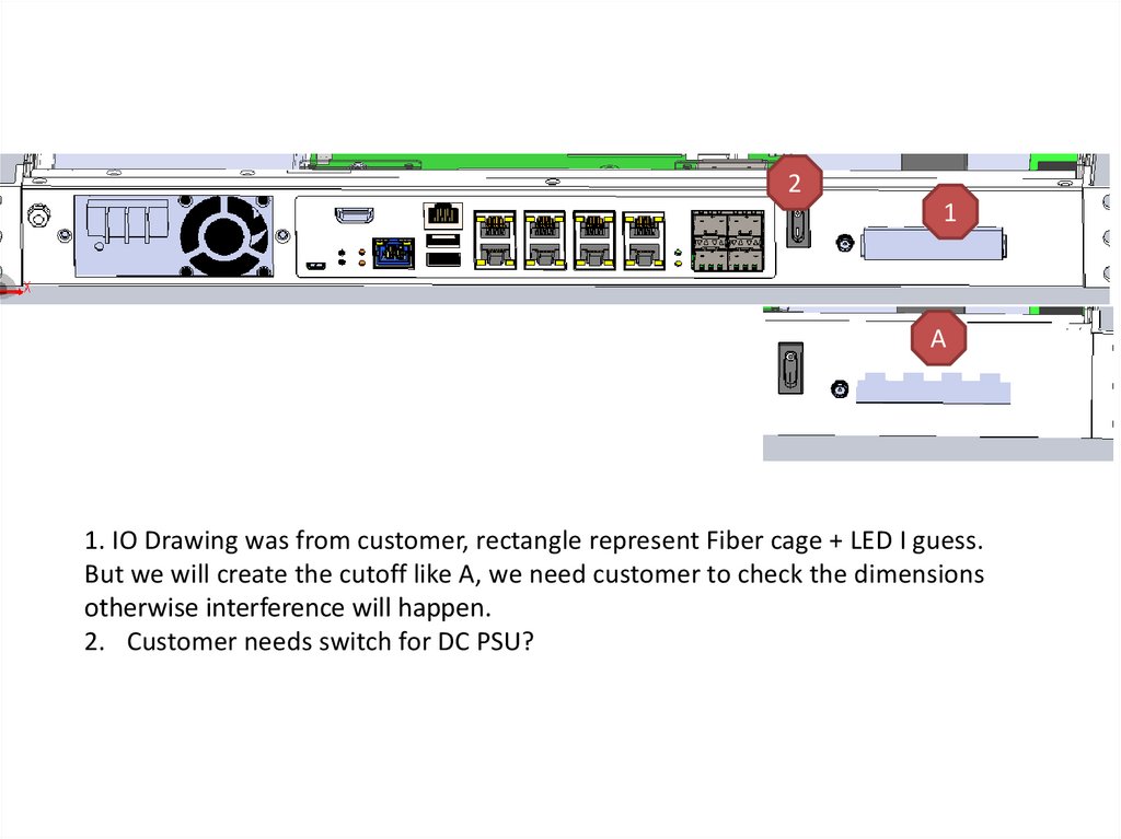 1. IO Drawing was from customer, rectangle represent Fiber cage + LED I guess.