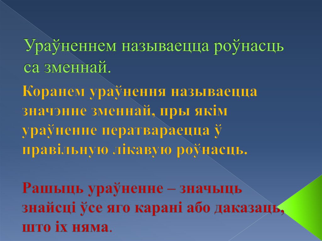 х = 45. Лік 45 называецца коранем ўраўнення.