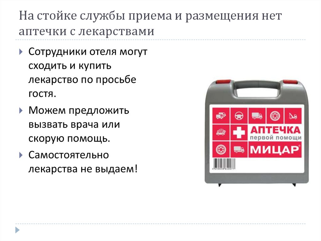На стойке службы приема и размещения нетаптечки с лекарствами