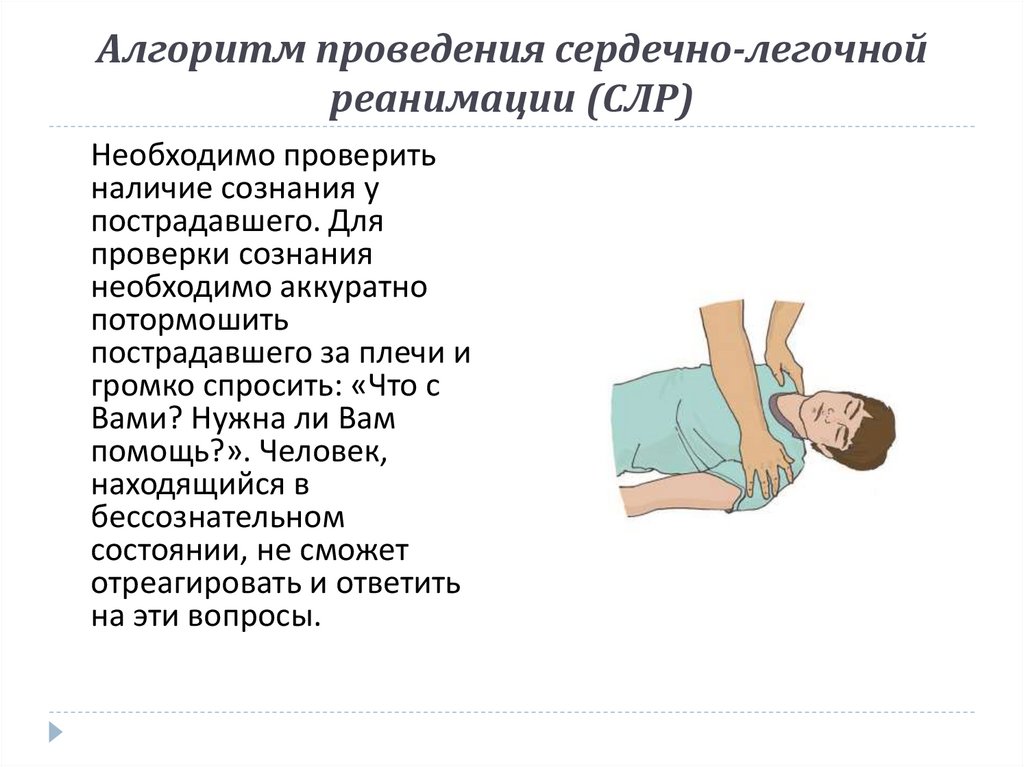 Алгоритм проведения сердечно-легочнойреанимации (СЛР)