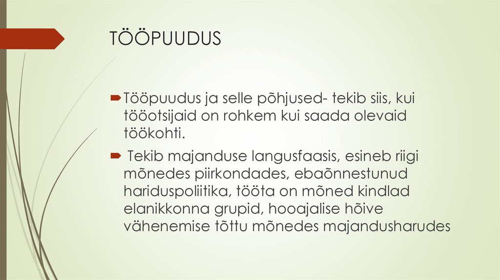 TÖÖPUUDUSTööpuudus ja selle põhjused- tekib siis, kui