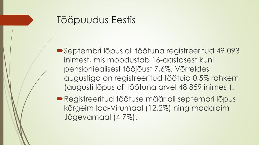 Tööpuudus EestisSeptembri lõpus oli töötuna registreeritud 49 093