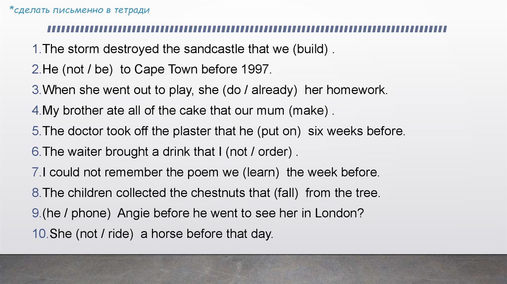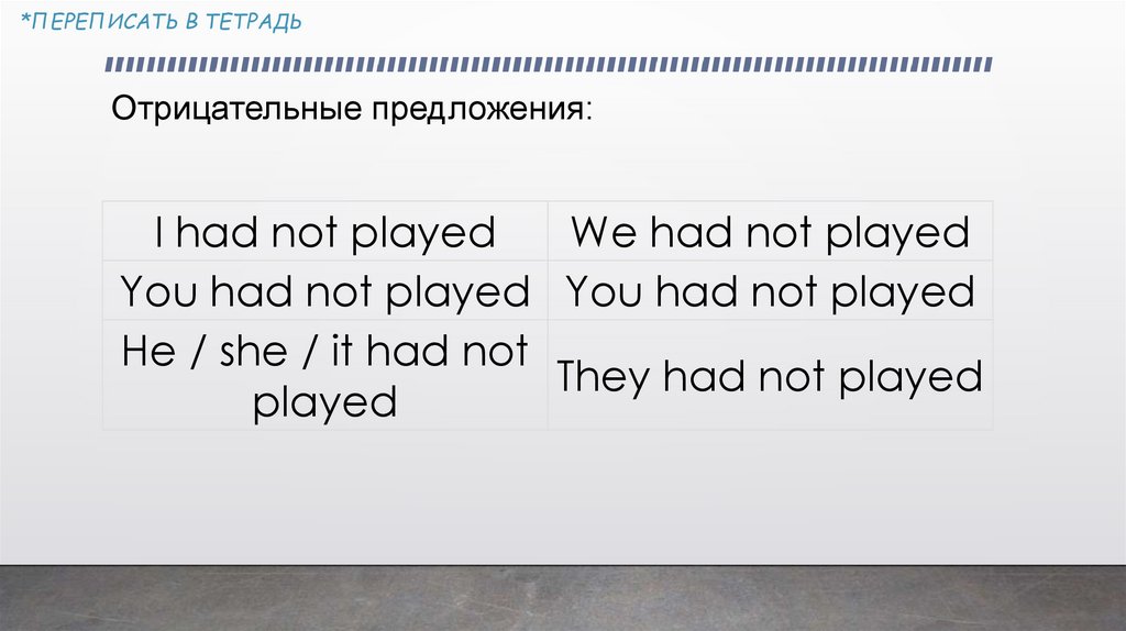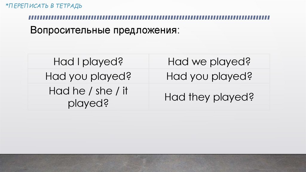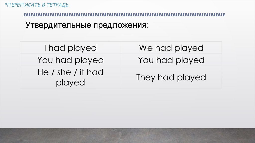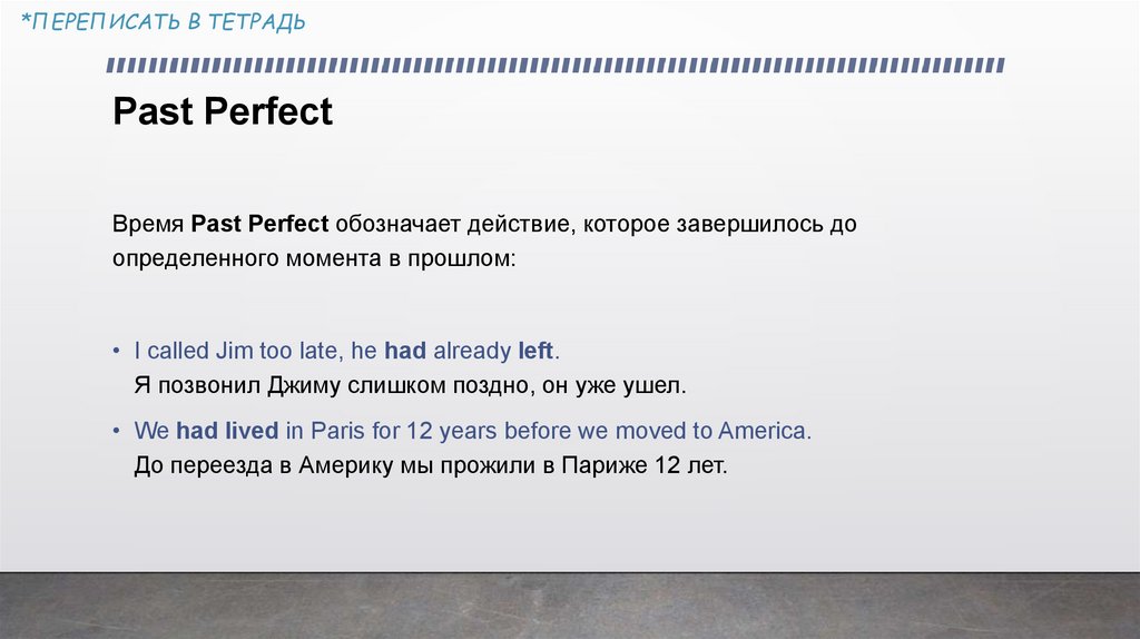 *ПЕРЕПИСАТЬ В ТЕТРАДЬPast Perfect