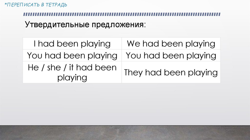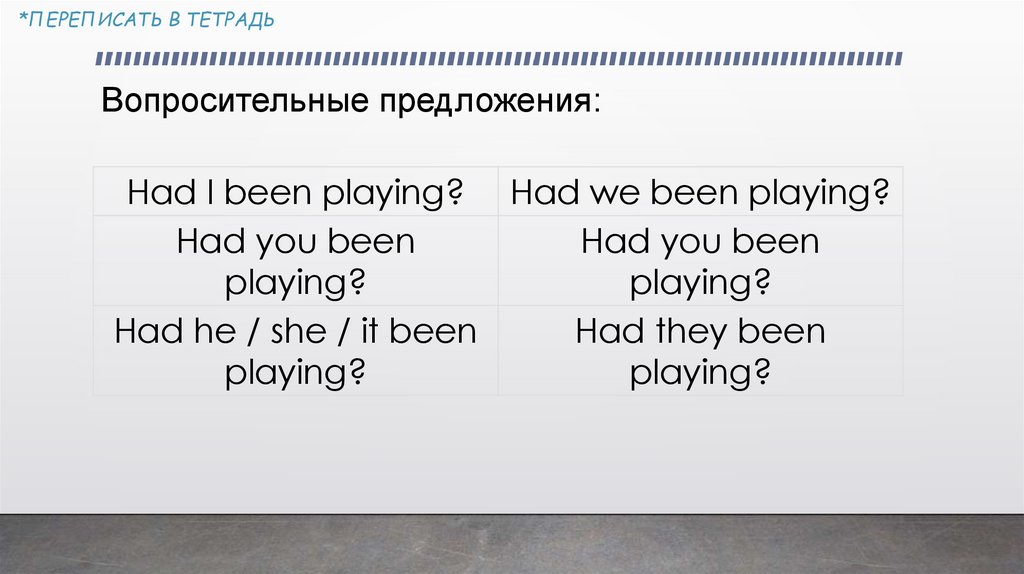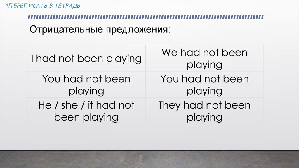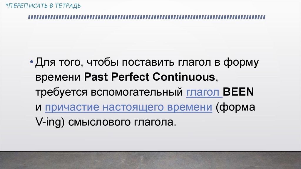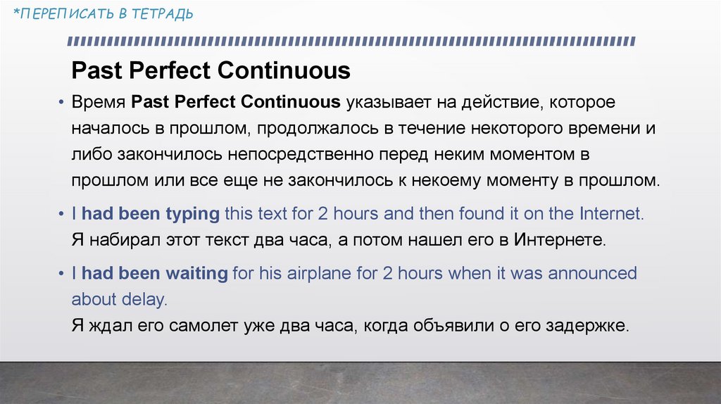 *ПЕРЕПИСАТЬ В ТЕТРАДЬPast Perfect Continuous