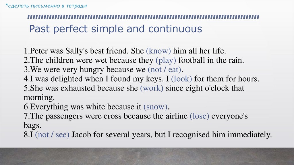 *сделать письменно в тетрадиPast perfect simple and continuous