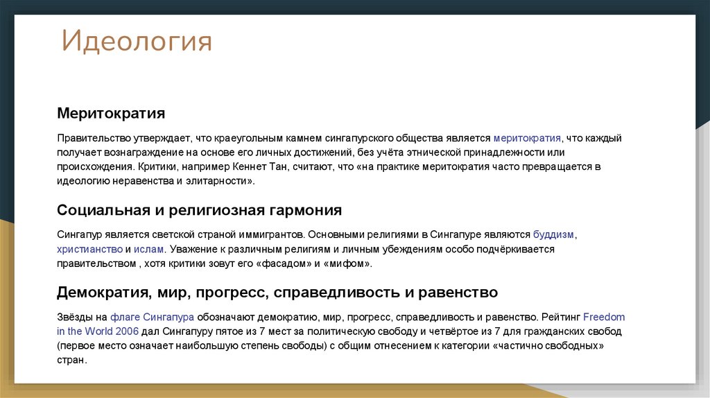 Звёзды на флаге Сингапура обозначают демократию, мир, прогресс, справедливость и равенство. Рейтинг Freedom