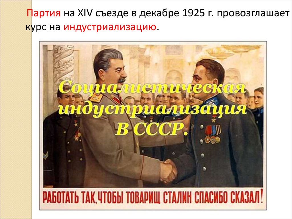 Партия на XIV съезде в декабре 1925 г. провозглашаеткурс на индустриализацию.