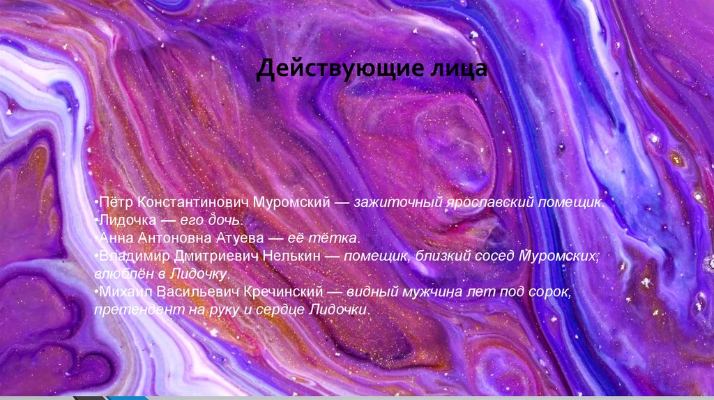 •Владимир Дмитриевич Нелькин — помещик, близкий сосед Муромских;