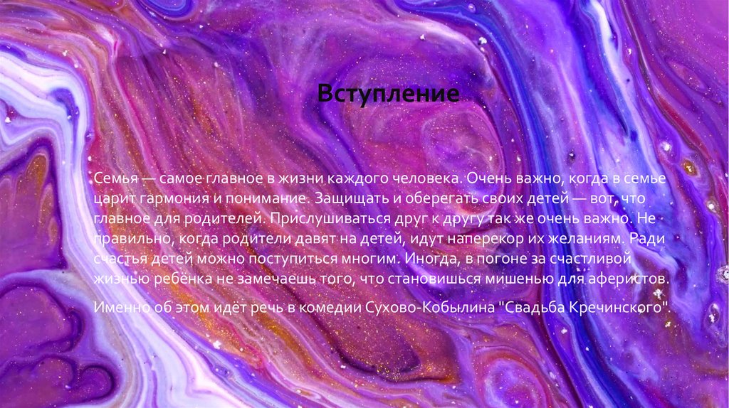 А.В Сухово-Кобылин "Свадьба Кречинского". Семейные и родственные отношения в комедии"