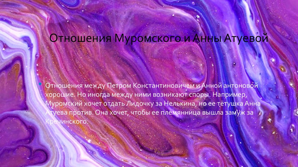 Отношения Муромского и Анны Атуевой• Отношения между Петром Константиновичем и Анной антоновой