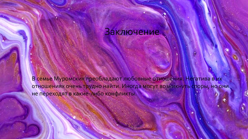 ЗаключениеВ семье Муромских преобладают любовные отношения. Негатива в их