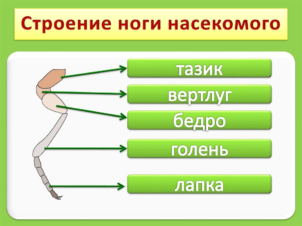 вертлуг, бедро, голень лапка), а так