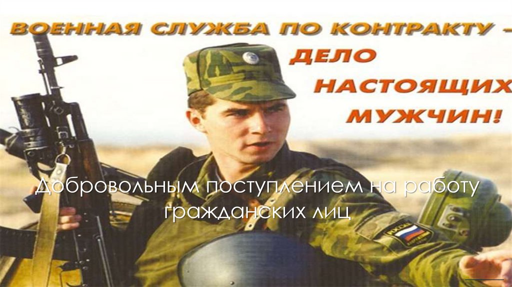 Добровольным поступлением на работугражданских лиц