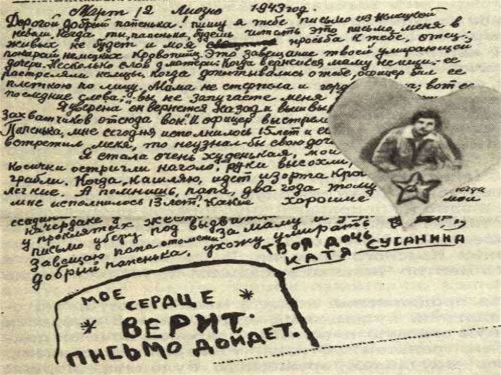 ПИСЬМО 15-ЛЕТНЕЙ ДЕВОЧКИ К. СУСАНИНОЙ СФАШИСТСКОЙ КАТОРГИ