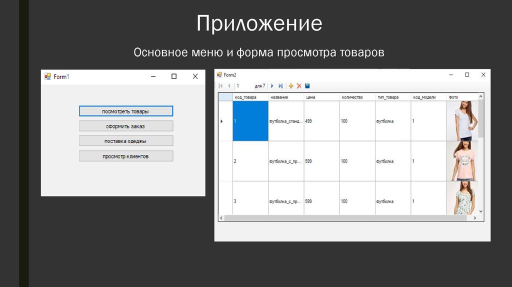 В данном проекте было создано приложение для магазина одежды. В базе данных