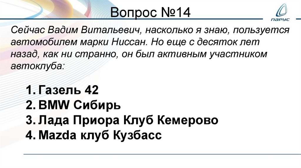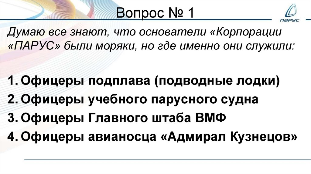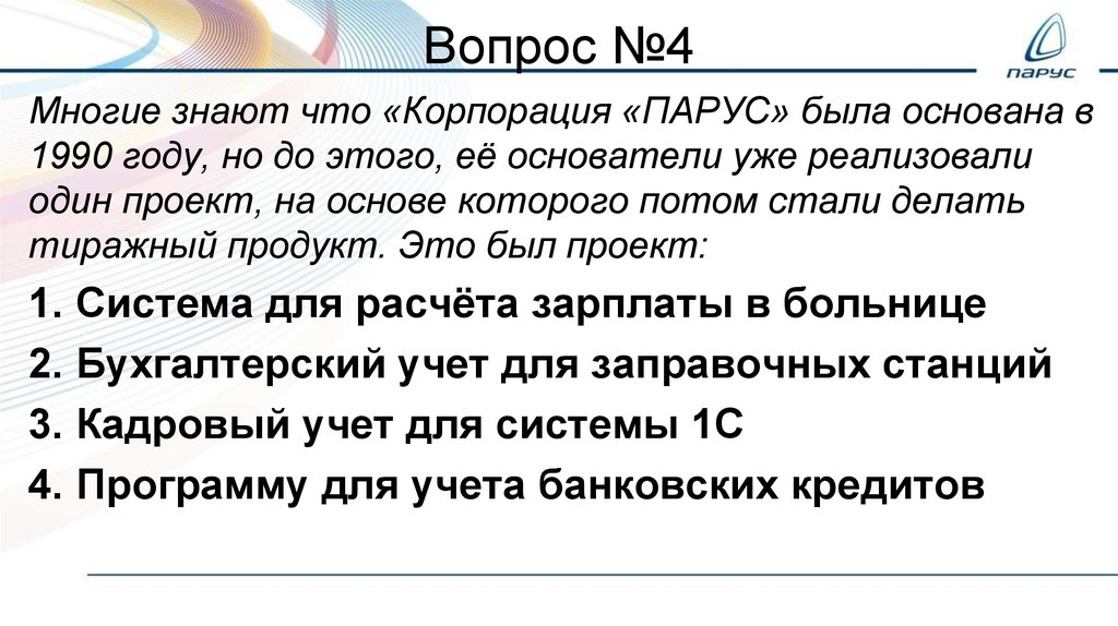 Вопрос №4Многие знают что «Корпорация «ПАРУС» была основана в