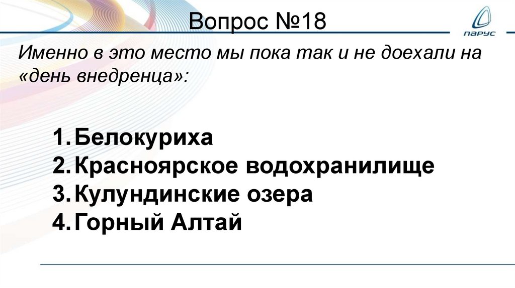 Вопрос №18Именно в это место мы пока так и не доехали на