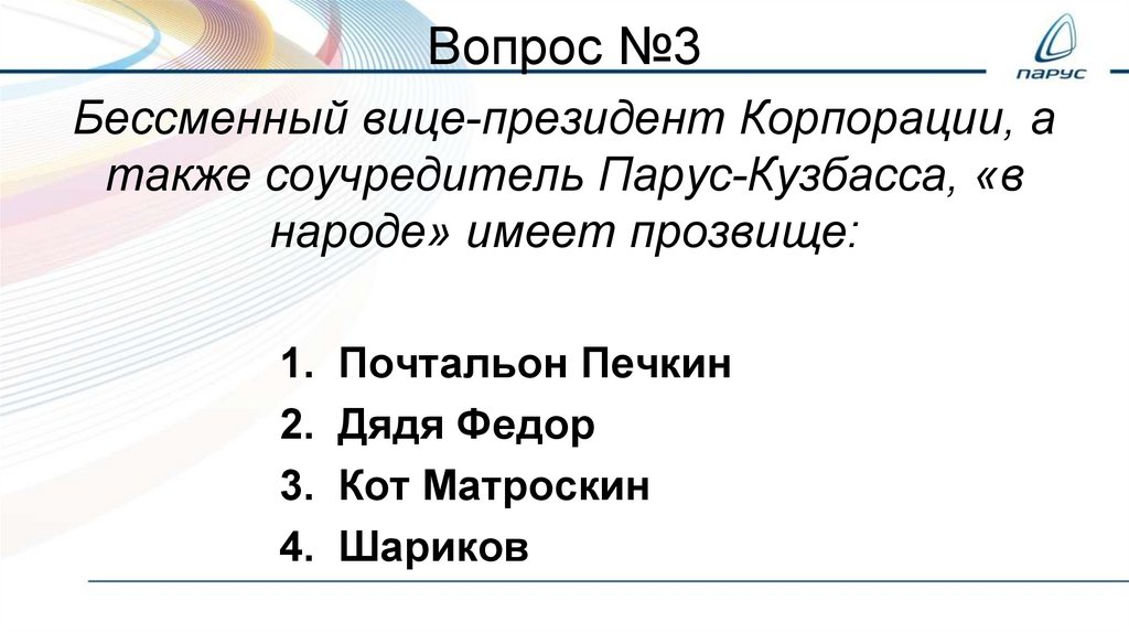 Вопрос №3Бессменный вице-президент Корпорации, а