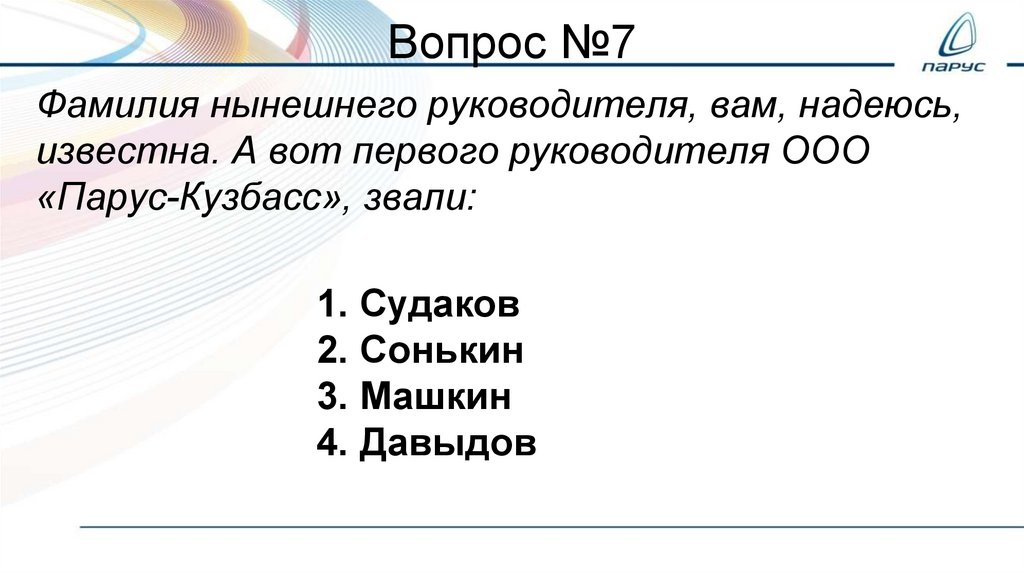 Вопрос №7Фамилия нынешнего руководителя, вам, надеюсь,