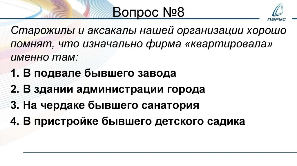 Вопрос №8Старожилы и аксакалы нашей организации хорошо