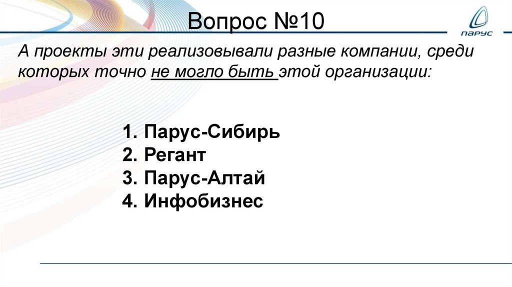 Вопрос №10А проекты эти реализовывали разные компании, среди