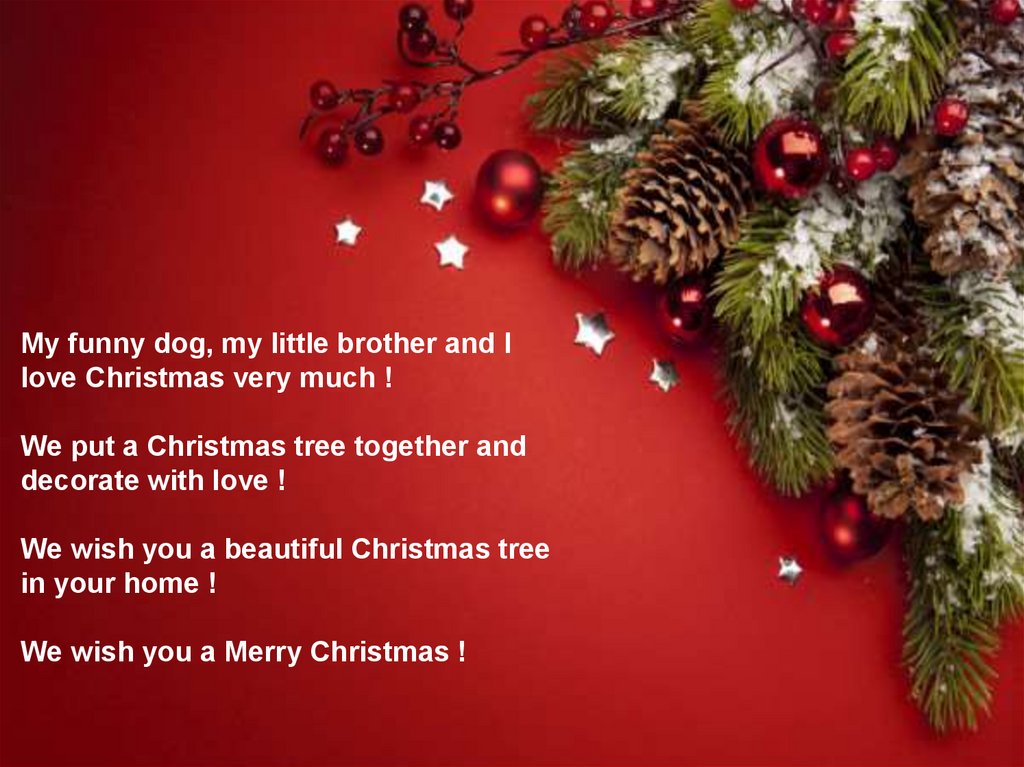 My funny dog, my little brother and Ilove Christmas very much !