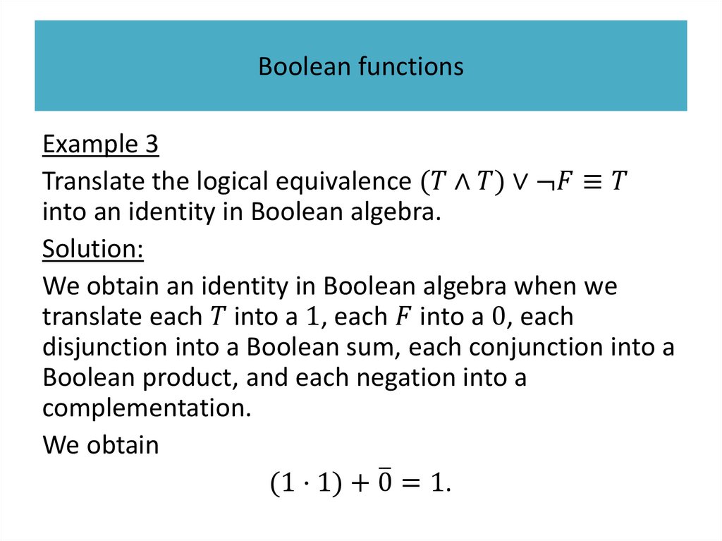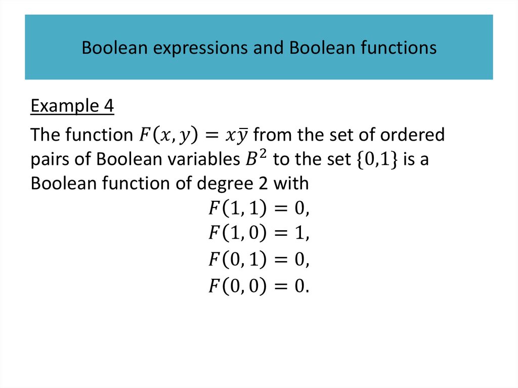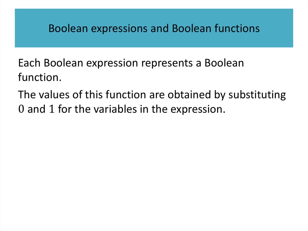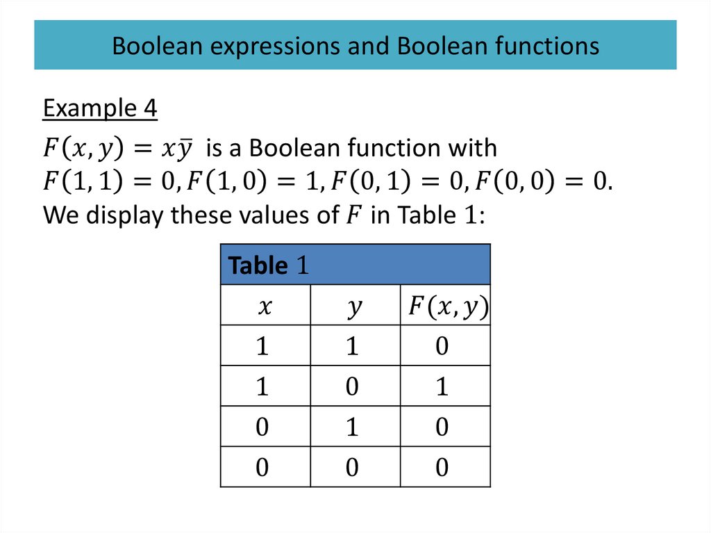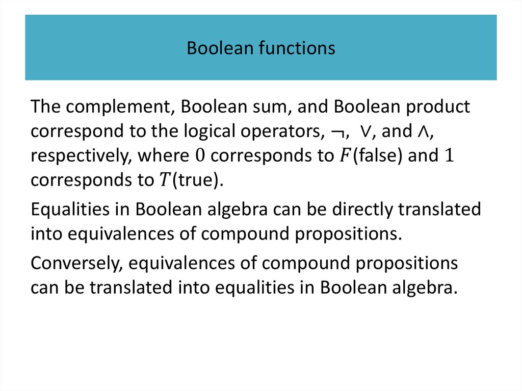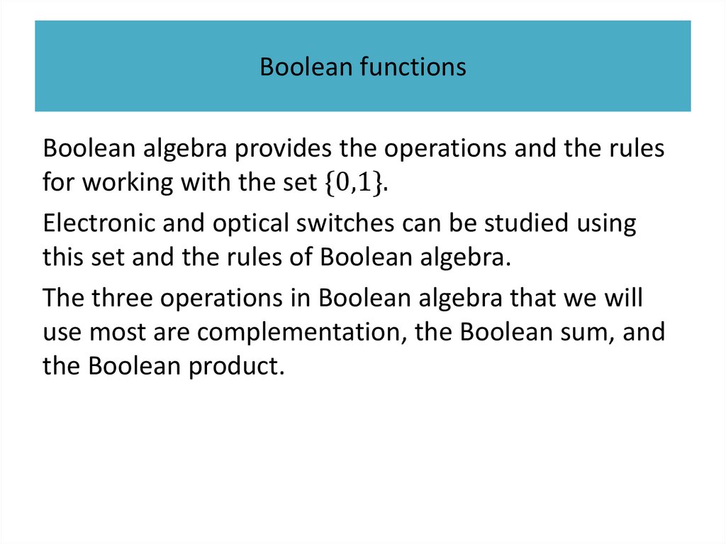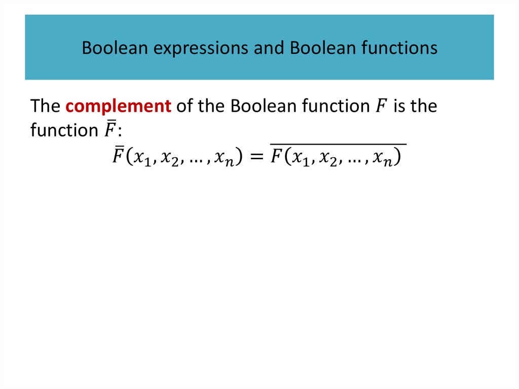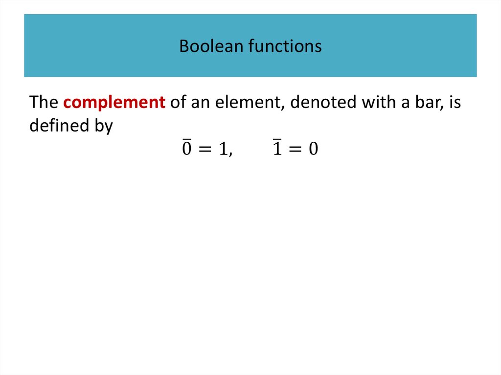 Boolean functionsThe complement of an element, denoted with a bar, is