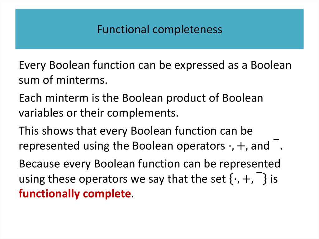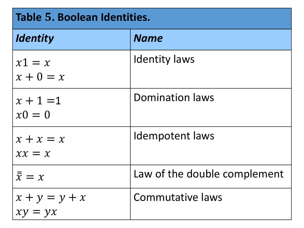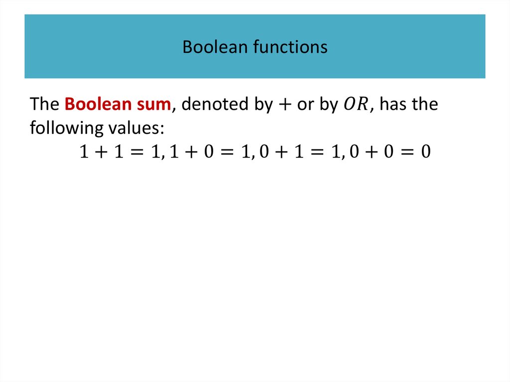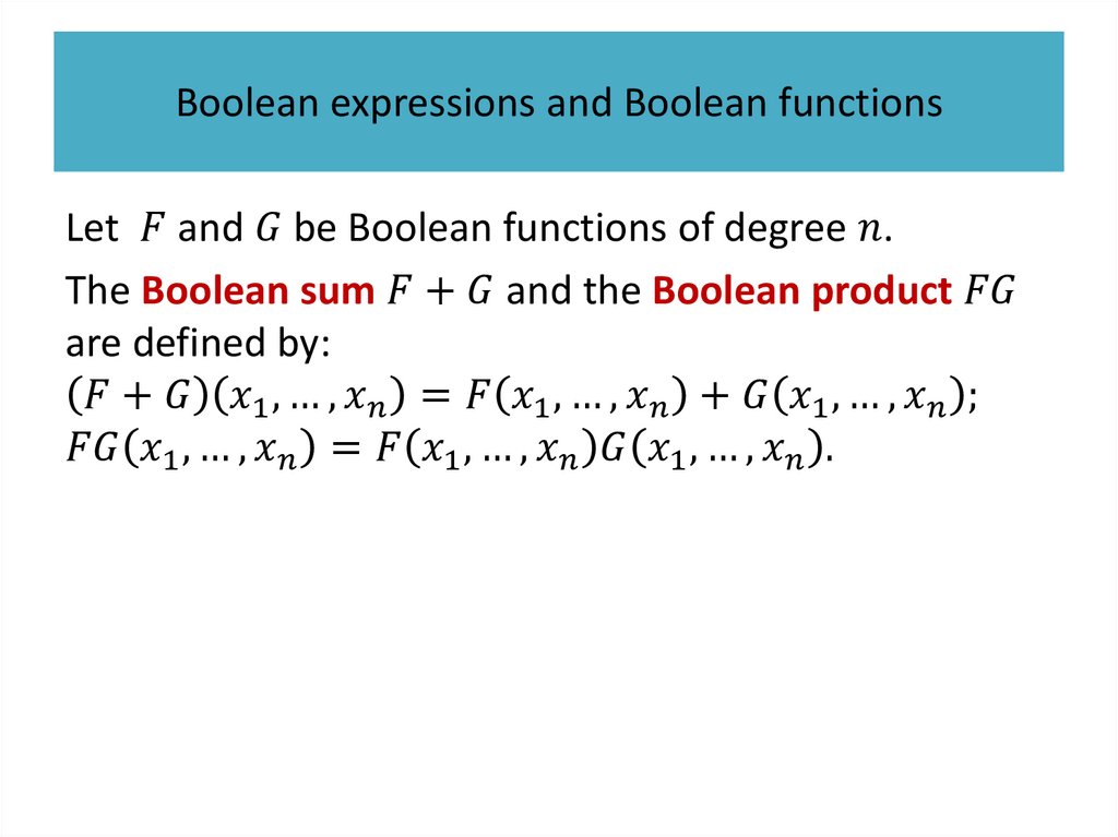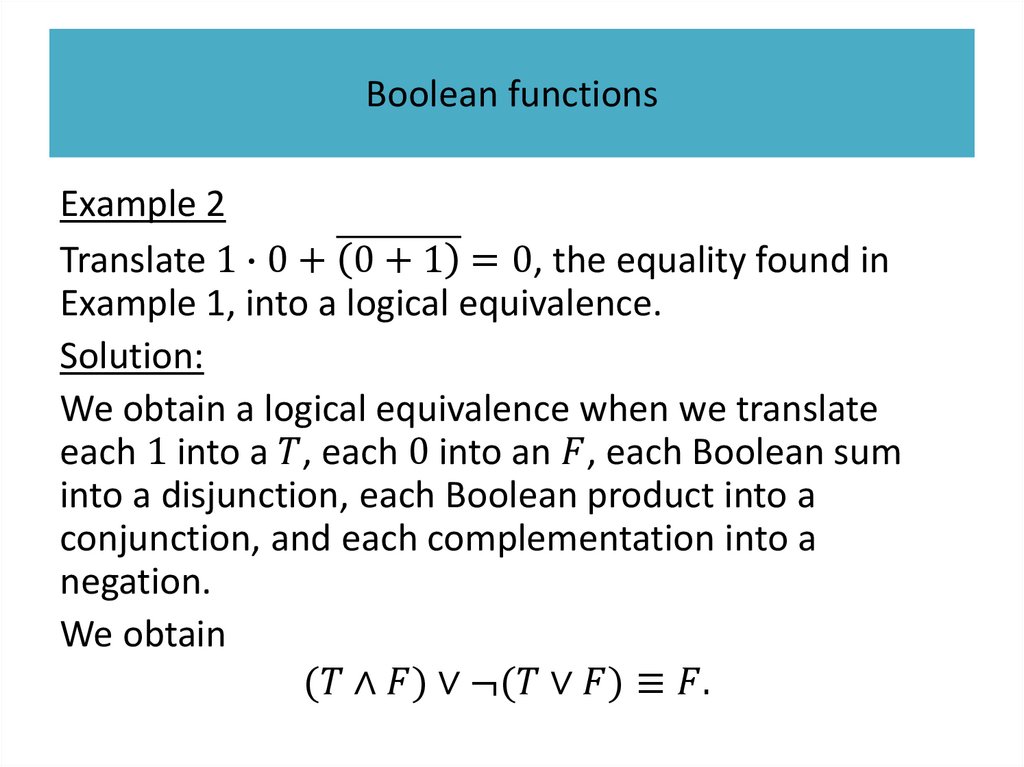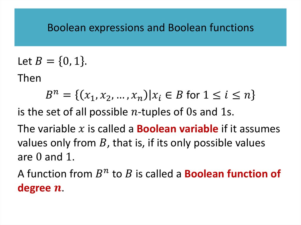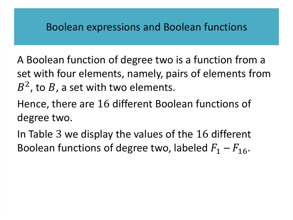 Boolean functionsThe complement of an element, denoted with a bar, is