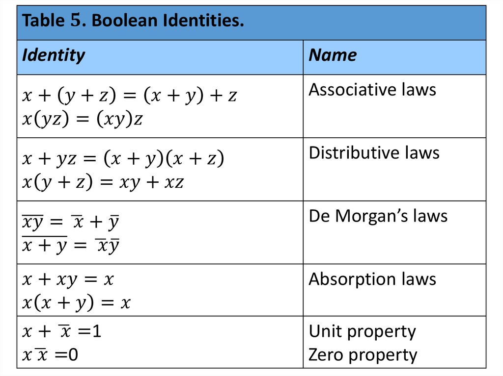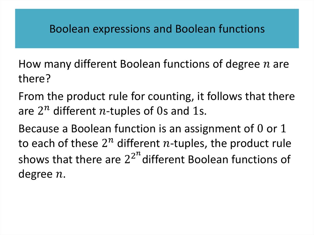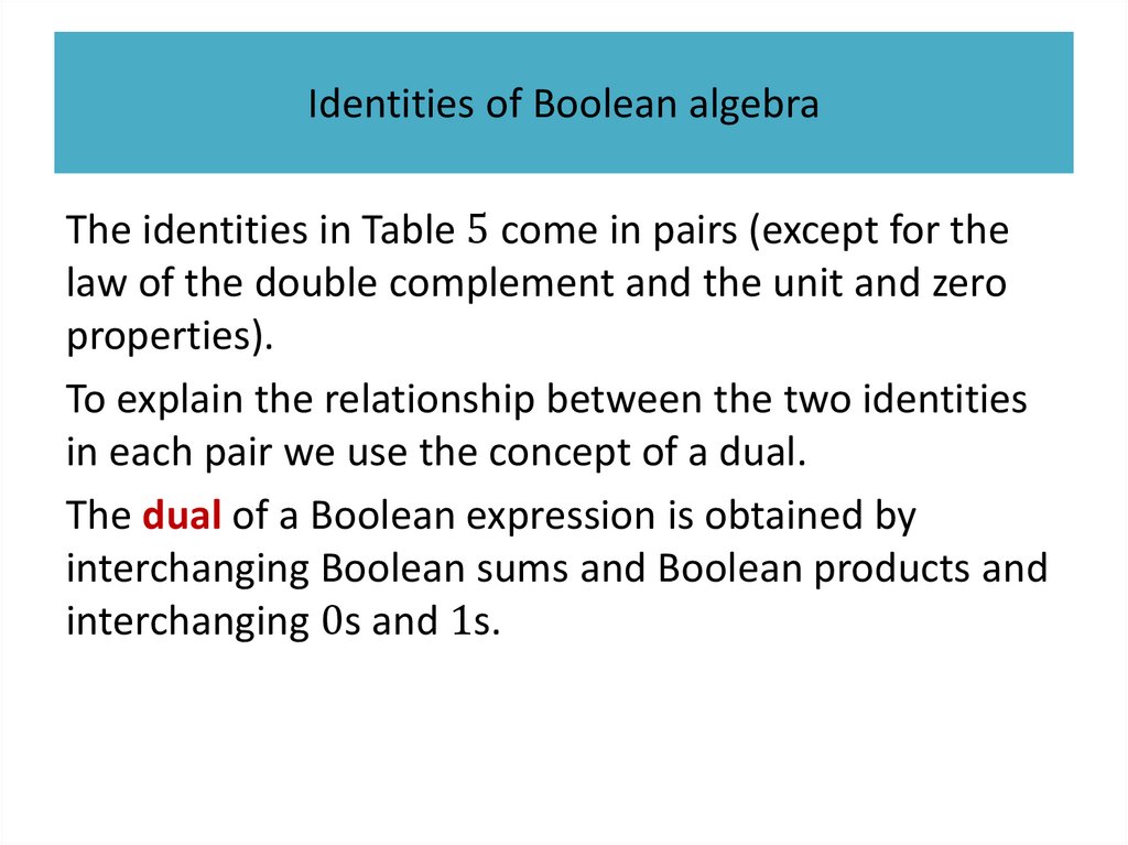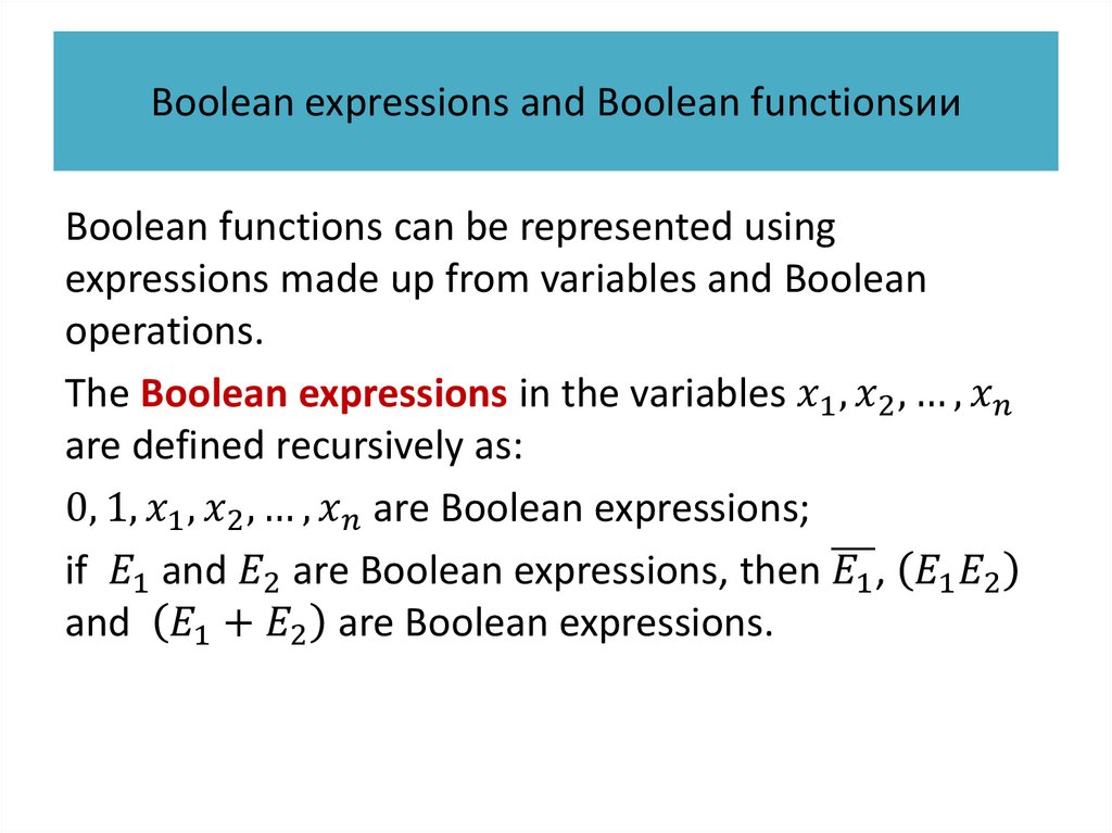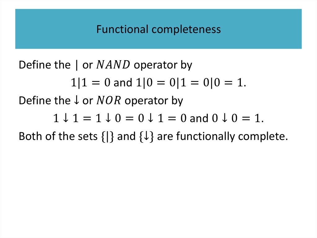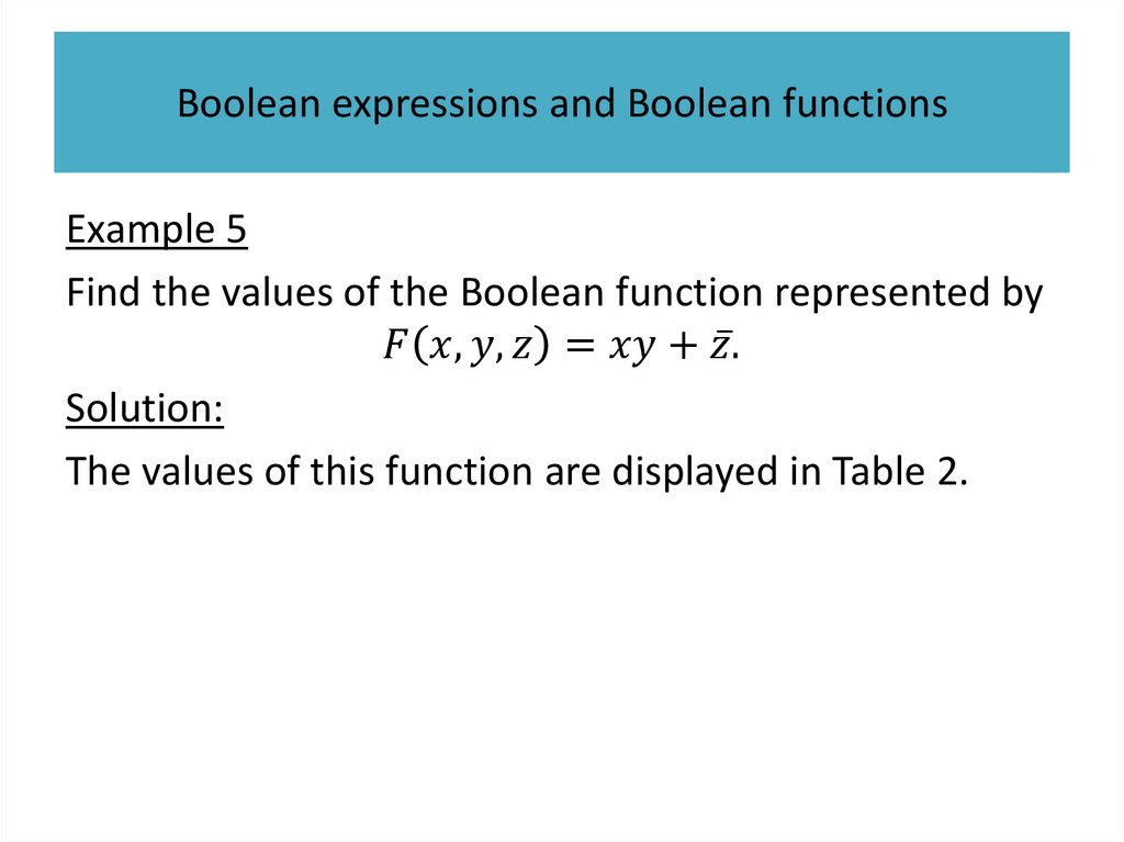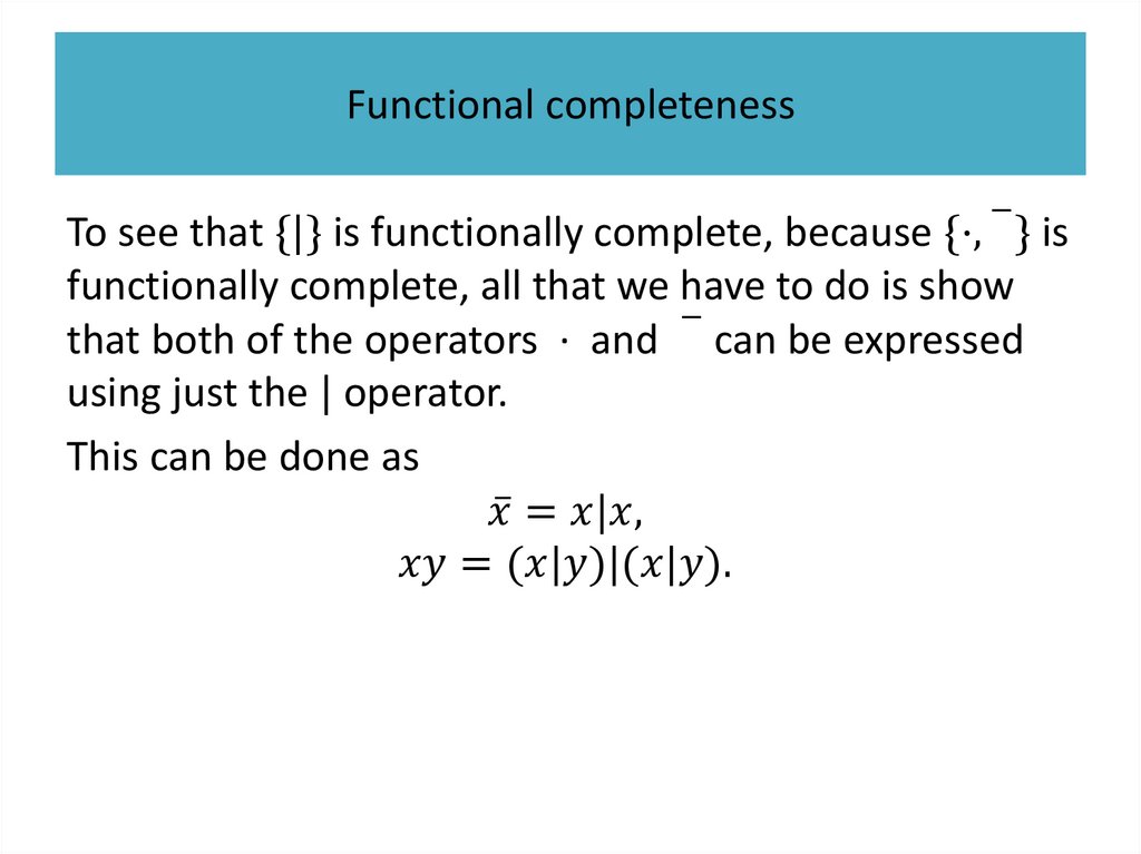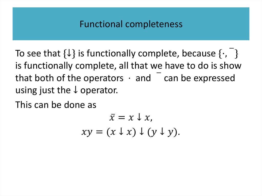 Boolean functionsThe complement of an element, denoted with a bar, is