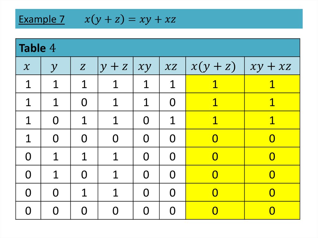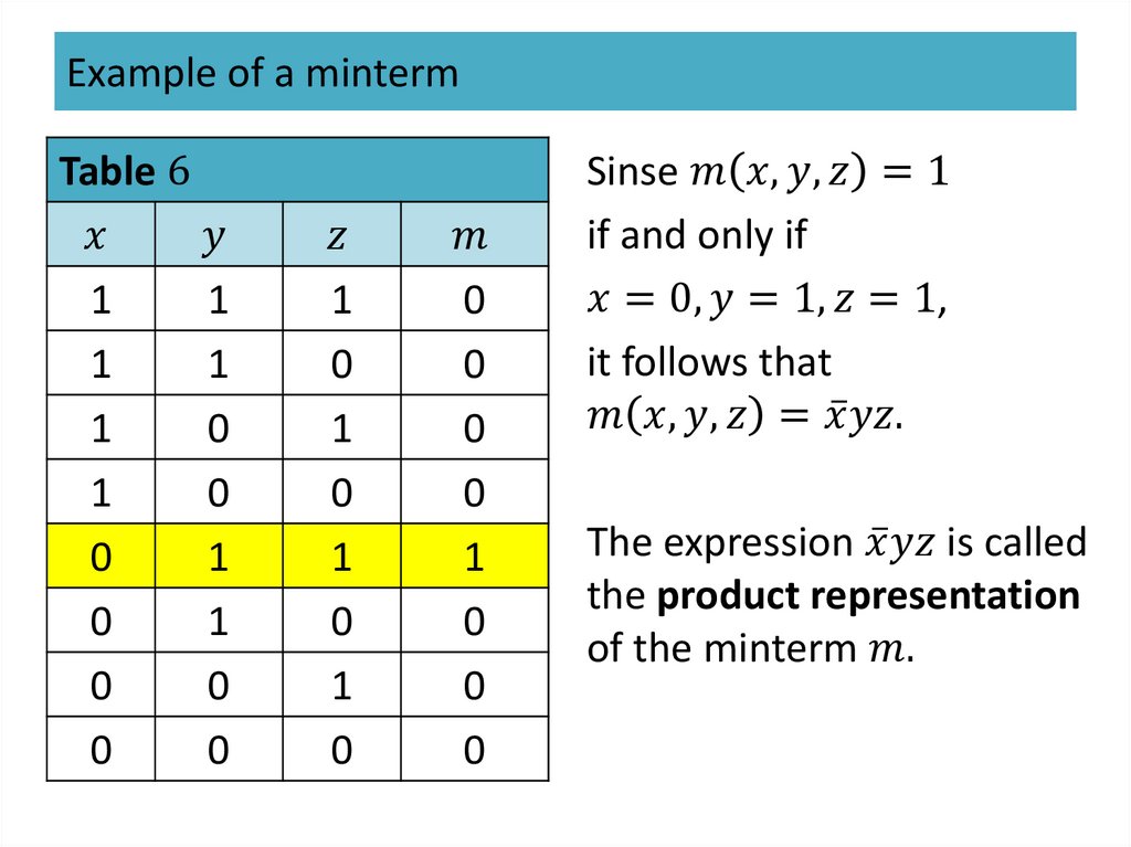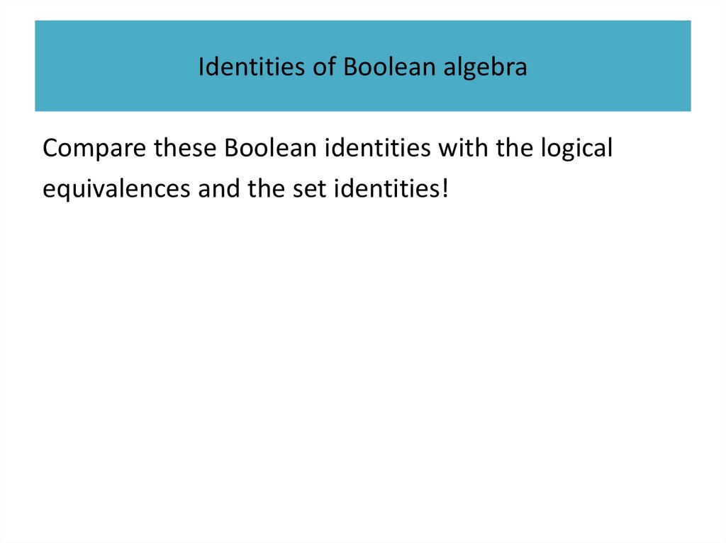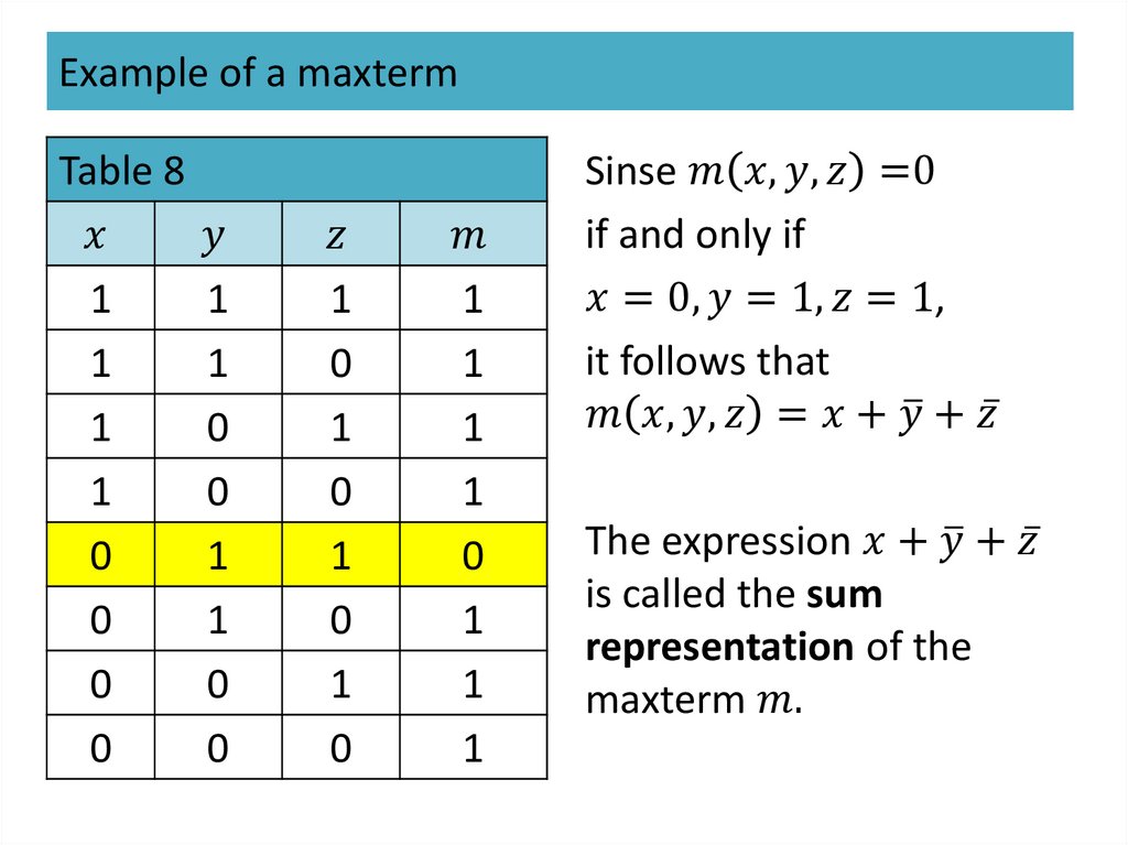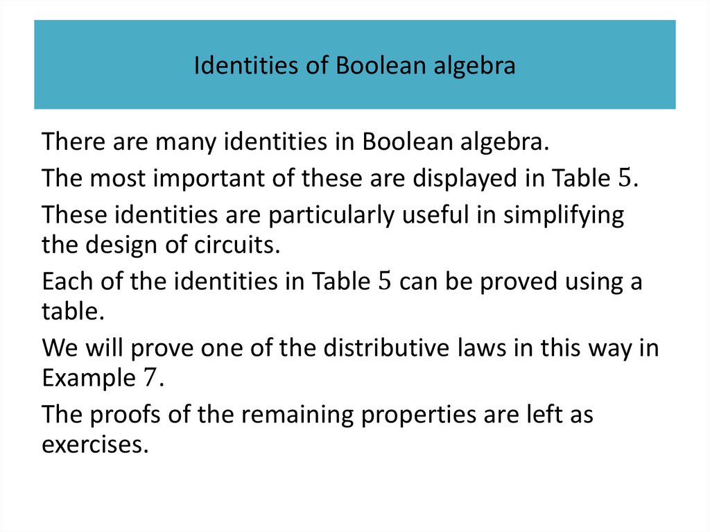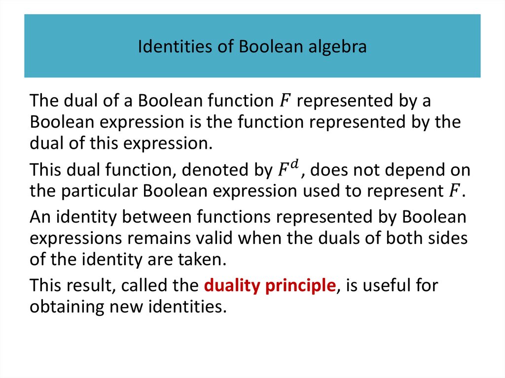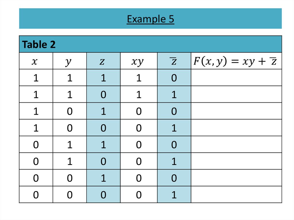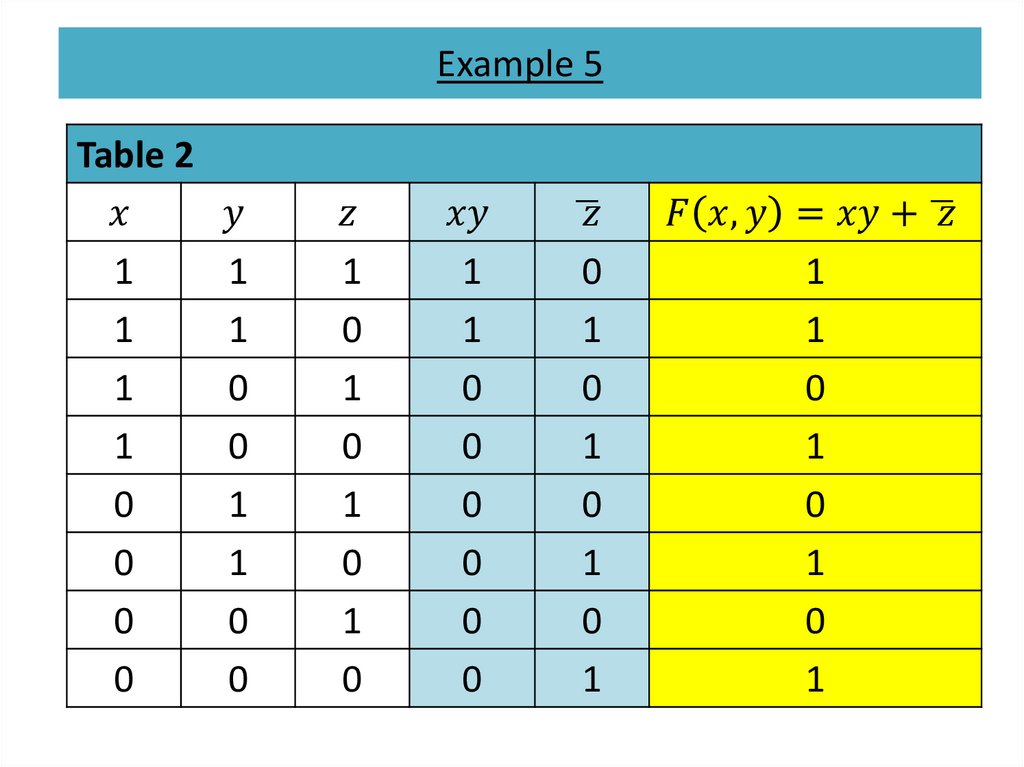 Boolean functionsThe complement of an element, denoted with a bar, is