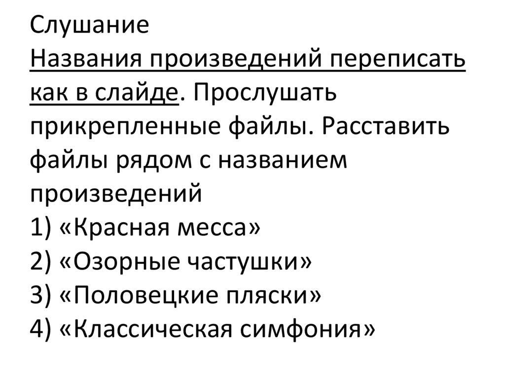 СлушаниеНазвания произведений переписать