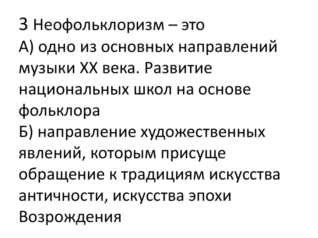 3 Неофольклоризм – этоА) одно из основных направлений