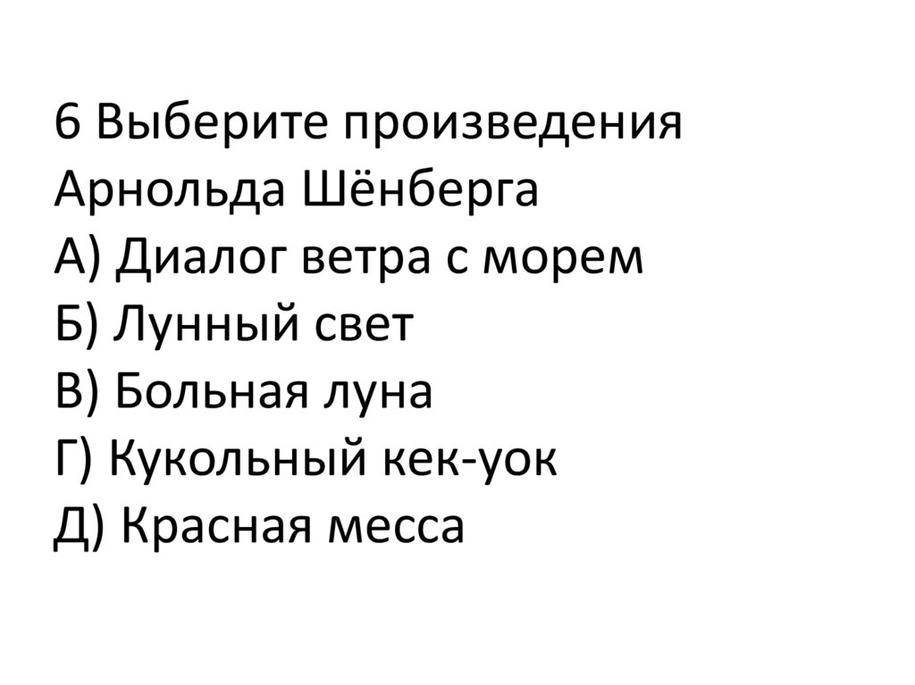 6 Выберите произведенияАрнольда Шёнберга