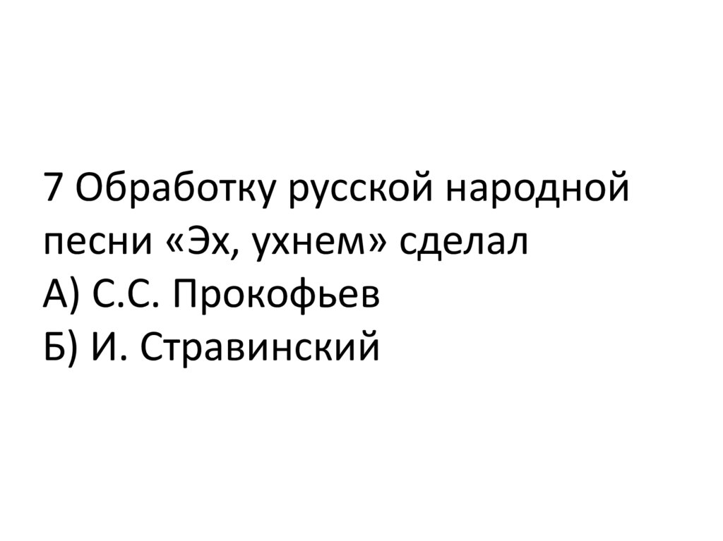 7 Обработку русской народнойпесни «Эх, ухнем» сделал