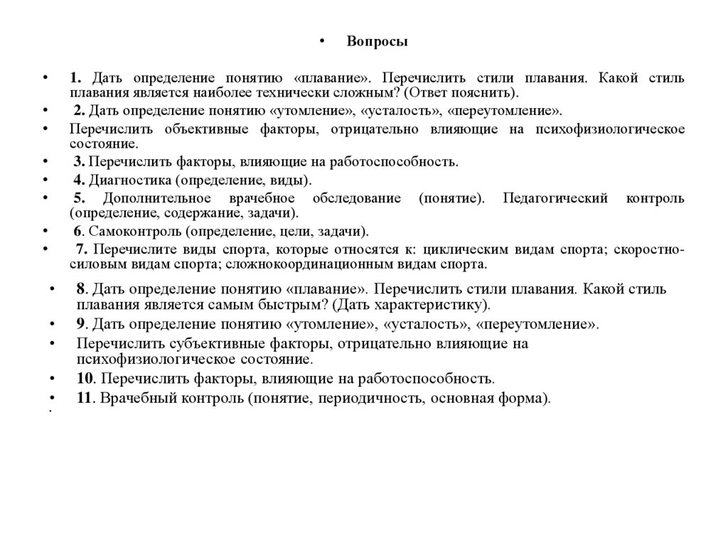 1. Дать определение понятию «плавание». Перечислить стили плавания. Какой стиль
