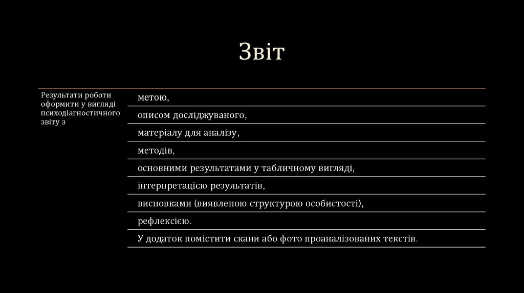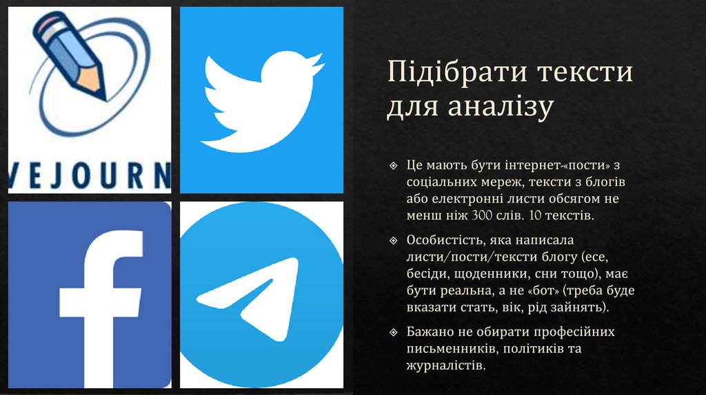 У додаток помістити скани або фото проаналізованих текстів.