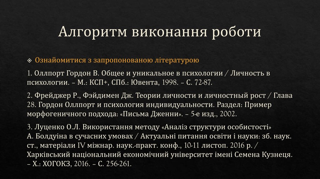 Предметом вивчення була індивідуальна структура її