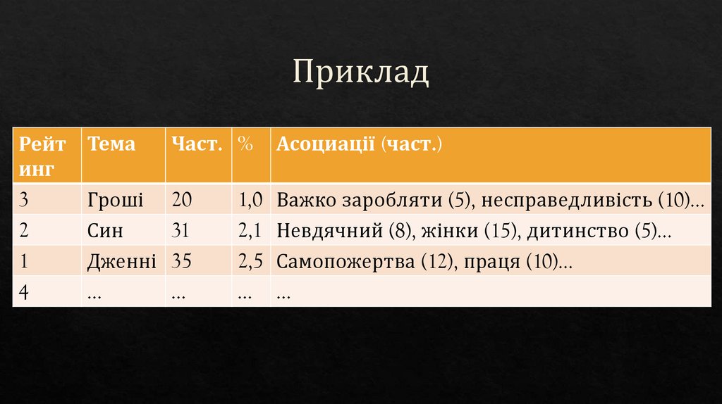 рахуються). Теми та асоціації рахуються протягом усіх 10-ти текстів.